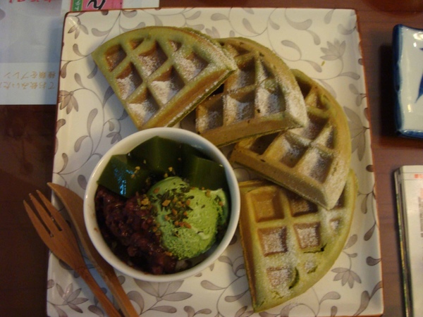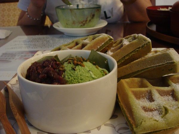 京都和風鬆餅 (強烈推薦 必點~~) 熱熱的鬆餅加上抹茶冰淇淋,正點!!
