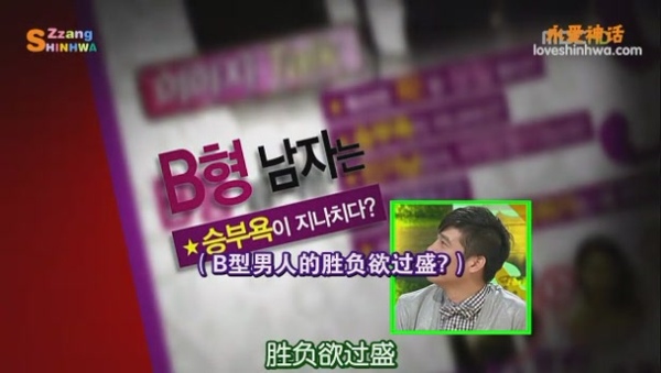 大家討論的結果認為B型人 -- 感情豐富而且很溫柔, 不會自誇,但會引導對方來稱讚自己 (例如: MC劉在碩)